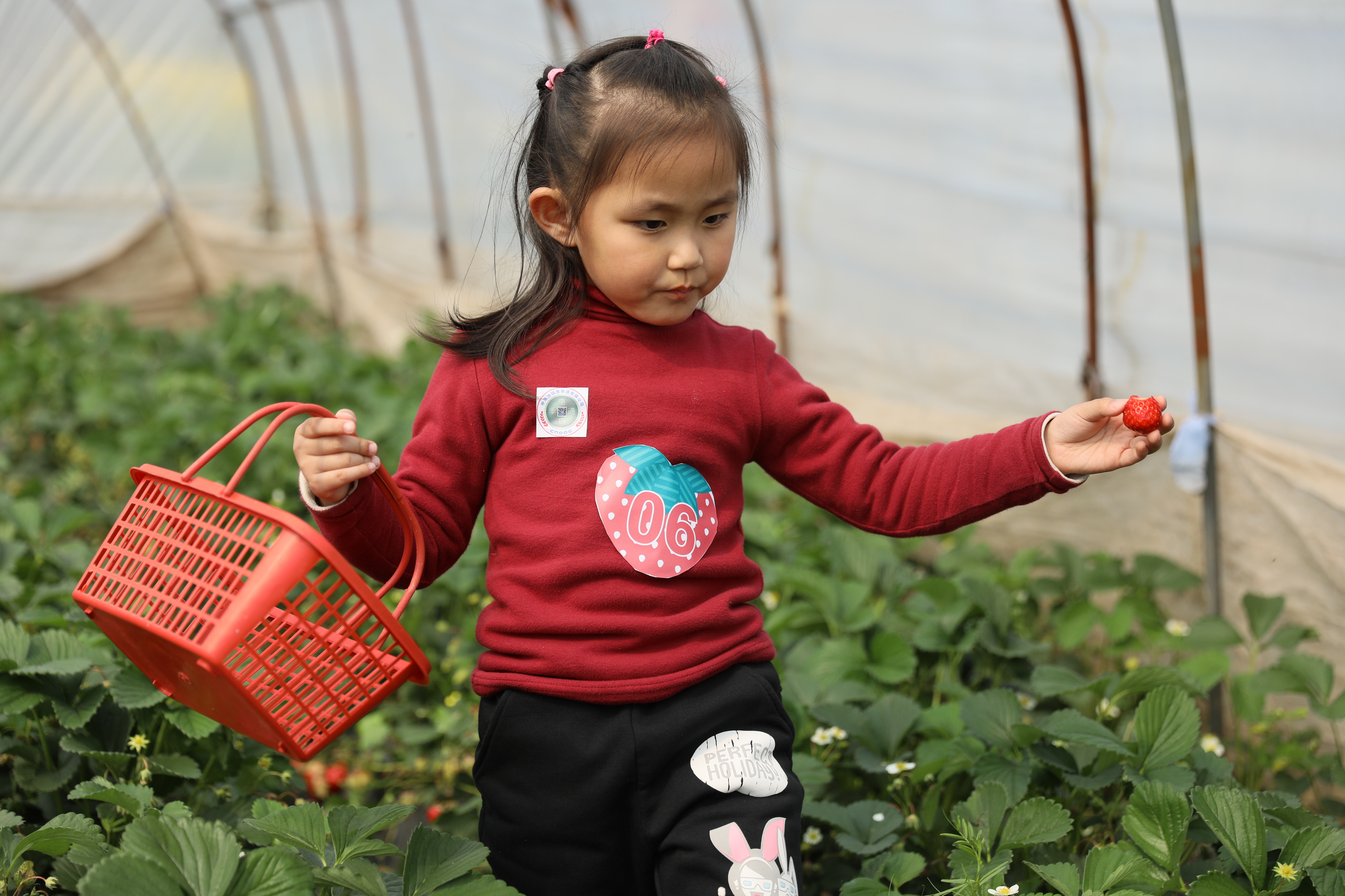 三月的微風(fēng)拂面,春天的氣息悄然來臨。草莓似乎是最能拉近人們和春天距離的一種水果。鮮紅欲滴的嬌嫩果實,伸著懶腰的綠葉,滿口略帶酒味的醇香,無法不讓你感覺到春天臨近的妙曼腳步。 提著竹筐, 穿梭在一行行“草莓方陣”中,一顆顆鮮紅誘人的草莓點綴在大片碧翠的綠田上,彎腰摘下一顆放入嘴里,味蕾被濃香的漿液喂飽,滿口生香。