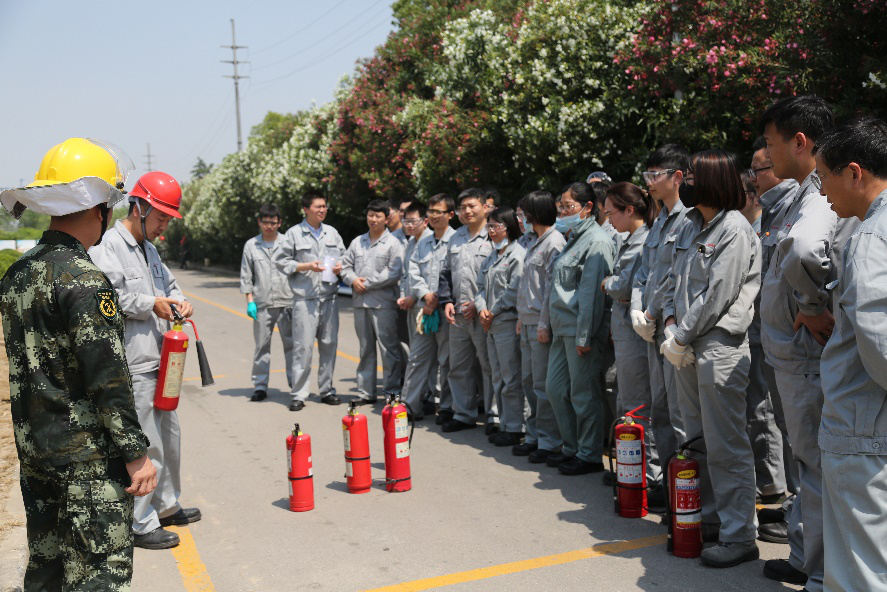 5月22日下午,南通江山農(nóng)藥化工股份有限公司直屬團支部在公司消防隊舉辦了消防技能比武活動,此次活動包括手持滅火器滅火、消防水帶使用、消防服及空呼器的穿戴。來自公司研究院、業(yè)務發(fā)展部、營銷中心、綜合管理部等6個部門,共計28名青年員工參加了活動?;顒娱_展之前,28名參賽選手通過抽簽方式分成兩組。接著公司消防隊長介紹了滅火器的種類、滅火器的使用方法以及比賽規(guī)則。