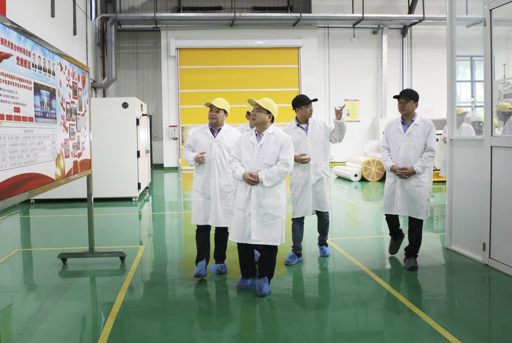 會(huì)議結(jié)束后,江超一行參觀了公司復(fù)合材料預(yù)浸料生產(chǎn)線和智能裝備生產(chǎn)線。 |