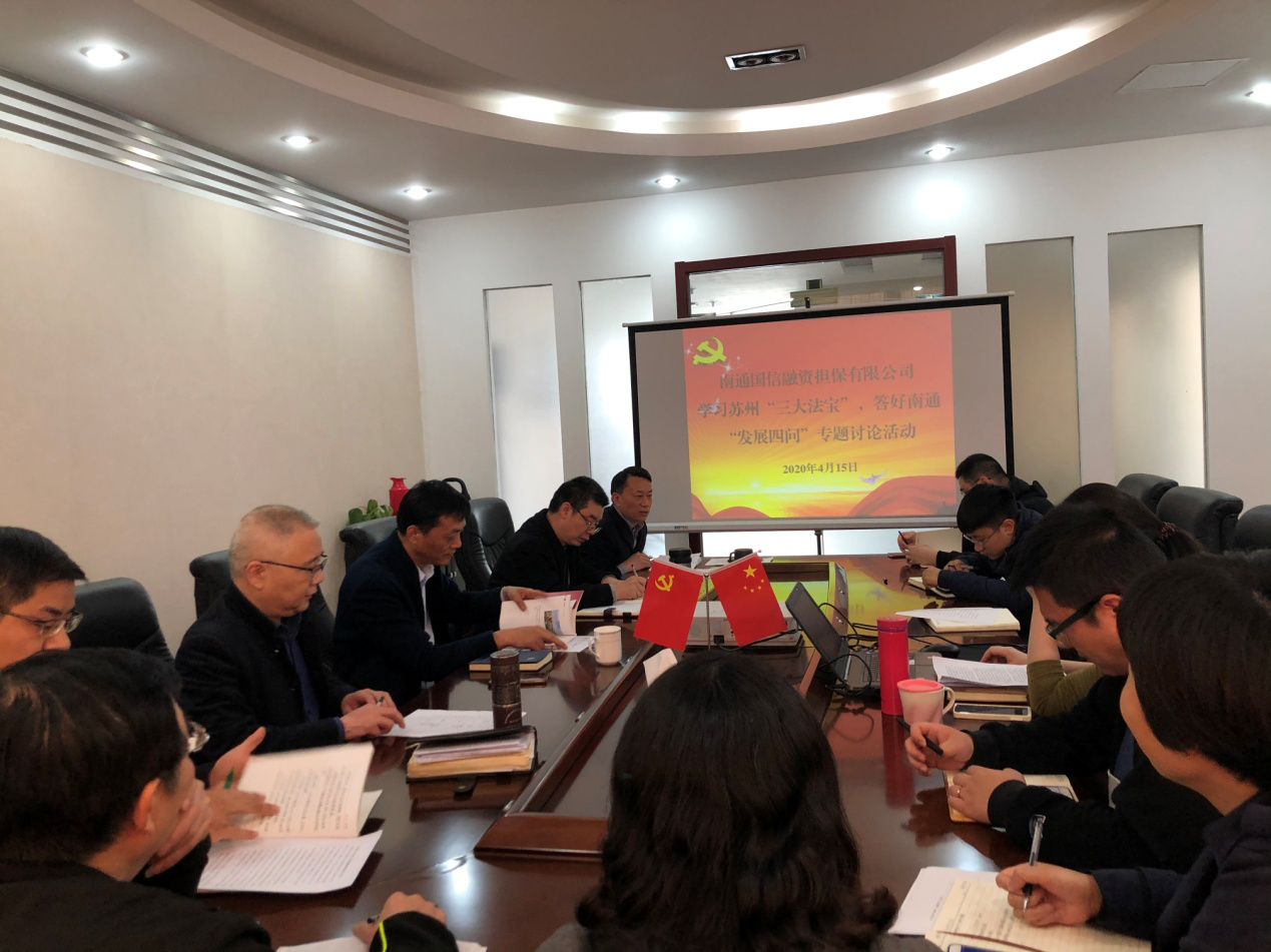 國信擔(dān)保公司召開學(xué)習(xí)蘇州“三大法寶”,答好南通 “發(fā)展四問”專題討論活動(dòng)