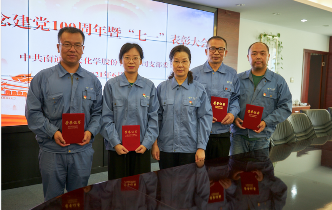 6月29日上午,南通江天化學(xué)股份有限公司黨支部在公司四樓會(huì)議室召開(kāi)紀(jì)念建黨100周年暨七一表彰大會(huì)。支部全體黨員、預(yù)備黨員、發(fā)展對(duì)象和積極分子參加了此次會(huì)議。黨支部書記陳梅主持會(huì)議。