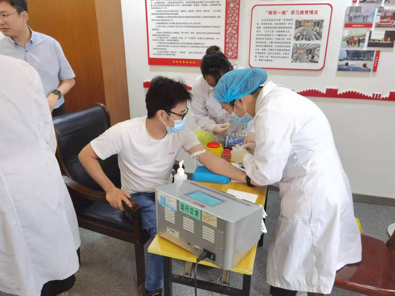 當(dāng)天上午8時(shí)20分,集團(tuán)系統(tǒng)黨員干部職工就早早來(lái)到了集團(tuán)獻(xiàn)血現(xiàn)場(chǎng),在工作人員的指引下,嚴(yán)格遵循疫情防控規(guī)定和獻(xiàn)血程序,有條不紊地進(jìn)行登記填表、血型化驗(yàn)、血液采集等流程。除集團(tuán)組織獻(xiàn)血以外,部分大型投資企業(yè)還在各自單位開(kāi)設(shè)了獻(xiàn)血點(diǎn)。