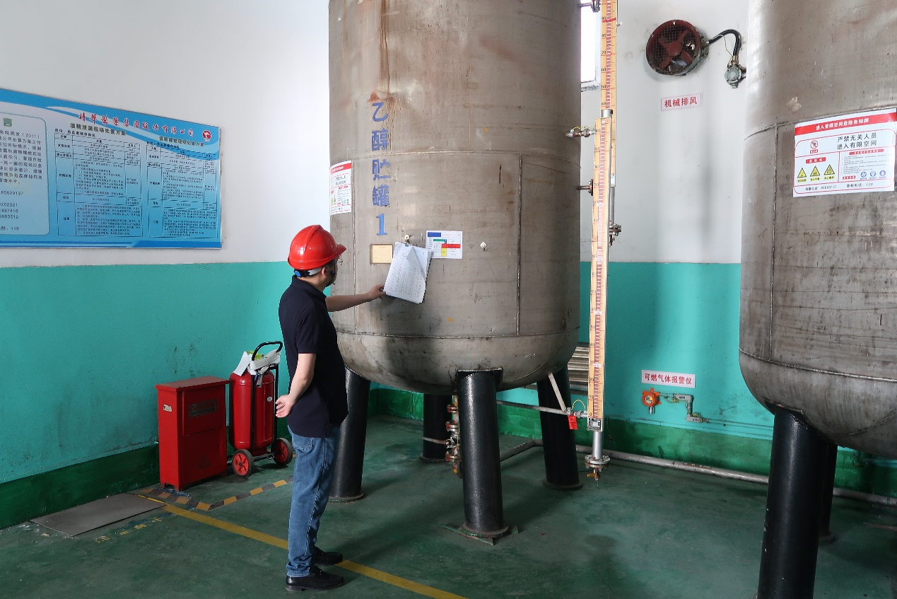 檢查組一行先行進(jìn)入危險品倉庫進(jìn)行檢查,成劍詳細(xì)了解了乙醇的儲存量、乙醇出入庫的管理要點、乙醇庫區(qū)的日常檢查重點等情況,成劍要求:企業(yè)要增強(qiáng)安全風(fēng)險意識,樹立底線思維;要按照安全大檢查的要求落實好各項工作;要持續(xù)開展安全專項整治,開展回頭看,排查生產(chǎn)中可能存在的問題和薄弱環(huán)節(jié),嚴(yán)格管控安全風(fēng)險,做好節(jié)假日前后安全生產(chǎn)工作。 檢查組在進(jìn)入倉庫、消防控制室現(xiàn)場檢查過程中,重點查看了疏散通道、安全出口是否暢通,應(yīng)急照明、疏散指示標(biāo)志是否保持完好有效,滅火器壓力是否正常,并現(xiàn)場抽查職工消防應(yīng)急預(yù)案掌握情況。成劍強(qiáng)調(diào):企業(yè)要進(jìn)一步落實好消防安全責(zé)任制,要按要求開展防火巡查、檢查,對查找出的隱患要及時閉環(huán)處理。