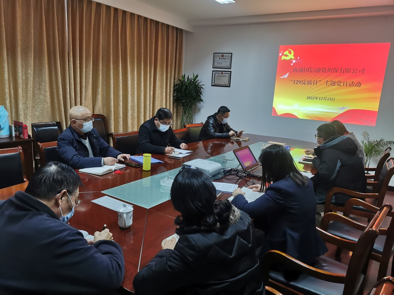 12月13日下午,國信擔(dān)保公司黨支部組織開展了“12?9”國際反腐日主題黨日活動,公司全體干部職工參加了此次活動。