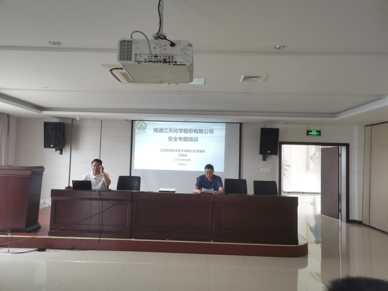 為全面貫徹習(xí)近平總書記關(guān)于安全生產(chǎn)的重要論述,進(jìn)一步提高全員安全意識(shí),提升崗位人員的HSE實(shí)操技能,加強(qiáng)承包商作業(yè)管理,6月13日下午,南通江天化學(xué)股份有限公司結(jié)合“人人講安全、個(gè)個(gè)會(huì)應(yīng)急”的安全生產(chǎn)月活動(dòng)主題,召開了半年度主要負(fù)責(zé)人HSE培訓(xùn)大會(huì)。本次大會(huì)特邀江蘇安泰安全技術(shù)有限公司董事長王錫濤同志為公司全體員工、承包商代表做安全生產(chǎn)專題培訓(xùn)講座。