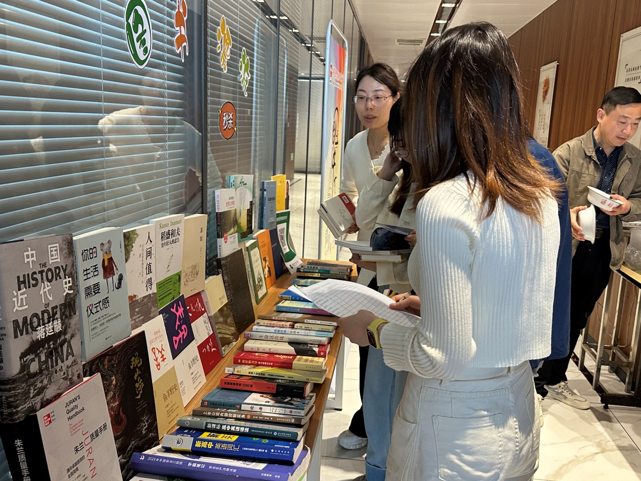 書香潤(rùn)智,雅行成習(xí)。為了讓員工們閑置的圖書流動(dòng)起來(lái),提高圖書的使用價(jià)值,營(yíng)造良好的讀書氛圍,打造書香精華,第29屆世界讀書日之際,精華制藥直屬團(tuán)支部根據(jù)集團(tuán)黨委部署,開展了“好書漂流、愛(ài)心無(wú)限-跳蚤書市”活動(dòng)。 為了保證此次活動(dòng)的順利開展,集團(tuán)直屬黨支部發(fā)出倡議,動(dòng)員員工將家中閑置的書籍捐贈(zèng),由集團(tuán)直屬團(tuán)支部負(fù)責(zé)收集售賣。 4月24日,直屬團(tuán)支部將“跳蚤書市”設(shè)在了人流量較大的公司食堂,支委們使出渾身解數(shù),書籍介紹、宣傳售賣、講價(jià)議價(jià)……全然一副新店開張的畫面,熱情洋溢。來(lái)往的員工們?nèi)祟^攢動(dòng),挑選購(gòu)買,收獲頗豐。公司領(lǐng)導(dǎo)們也積極加入“購(gòu)書”隊(duì)伍,讓“跳蚤書市”的氣氛更加活躍。 此次“跳蚤書市”是集團(tuán)第三屆“菁閱”讀書月系列活動(dòng)之一,近年來(lái)公司致力打造良好學(xué)習(xí)氛圍,持續(xù)激發(fā)員工們的閱讀熱情,不斷為打造精華“百年老店”蓄力。據(jù)統(tǒng)計(jì),僅當(dāng)日售賣書籍就已超捐贈(zèng)書籍的半數(shù),后續(xù)團(tuán)支部將集合所有售書款用于公益事業(yè)。