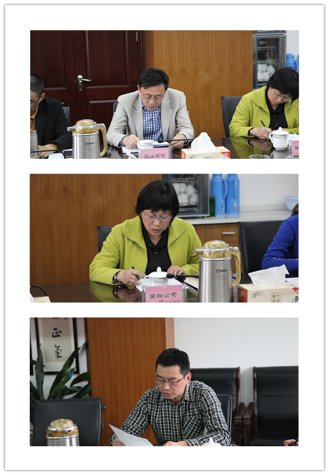 座談會上,產(chǎn)控集團(tuán)黨委副書記陸強(qiáng)新傳達(dá)了全市“兩學(xué)一做”學(xué)習(xí)教育座談會相關(guān)精神。江山股份、國融公司、直屬支部等3個黨組織的負(fù)責(zé)人結(jié)合工作實際,圍繞“兩學(xué)一做”學(xué)習(xí)教育工作打算進(jìn)行了表態(tài)發(fā)言。